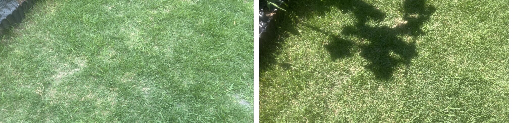 左が6月22日で、右が6月29日の芝生の状態です。梅雨が明け天気の良い日が続き、芝はどんどん生長しています。週1回の芝刈りによって少しづつ密度も高まっている印象です。