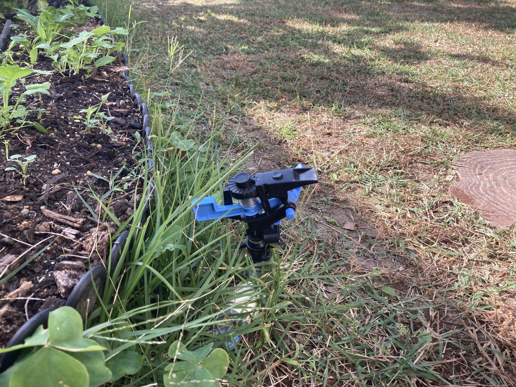 今回、除草剤を噴霧器ではなく刷毛で塗布しました。これは菜園や植栽が芝生のすぐ横にあるため、周囲の植物を守る目的でした。しかし、後から確認したところ散布後すぐにスプリンクラーで朝・夕と自動散水されていたことがわかりました。初回の散水は10時間ほど経過していたと思われますが、その後も毎日散水されたことで効果が弱まってしまったようです。