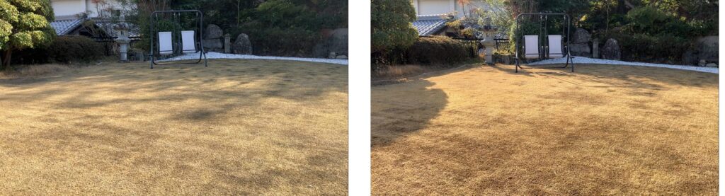写真だけを見ると散布前とほとんど変わらないように見えますが、ブレンドカルスの散布により、土の中の環境を整えています。