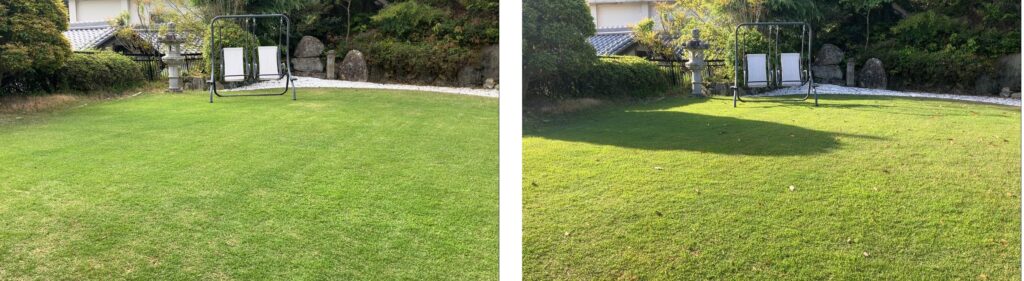 見た目の大きな変化はまだありませんが、雑草の枯れが進み、芝生の状態は少しずつ整ってきています。